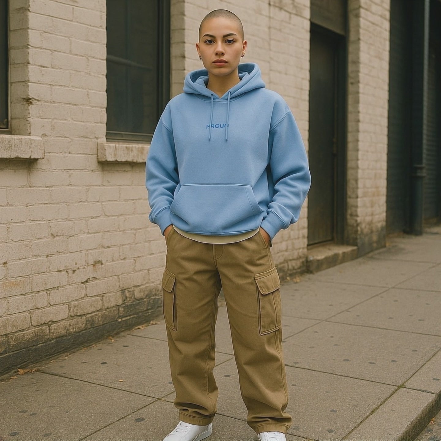 The Proud. Hoodie is a celebration of self-expression in its purest form. Featuring a clean, monochromatic embroidery of the word "Proud." over the heart, this hoodie is designed to feel as good as it looks — soft, cozy, and made to move with you through every moment of your journey.